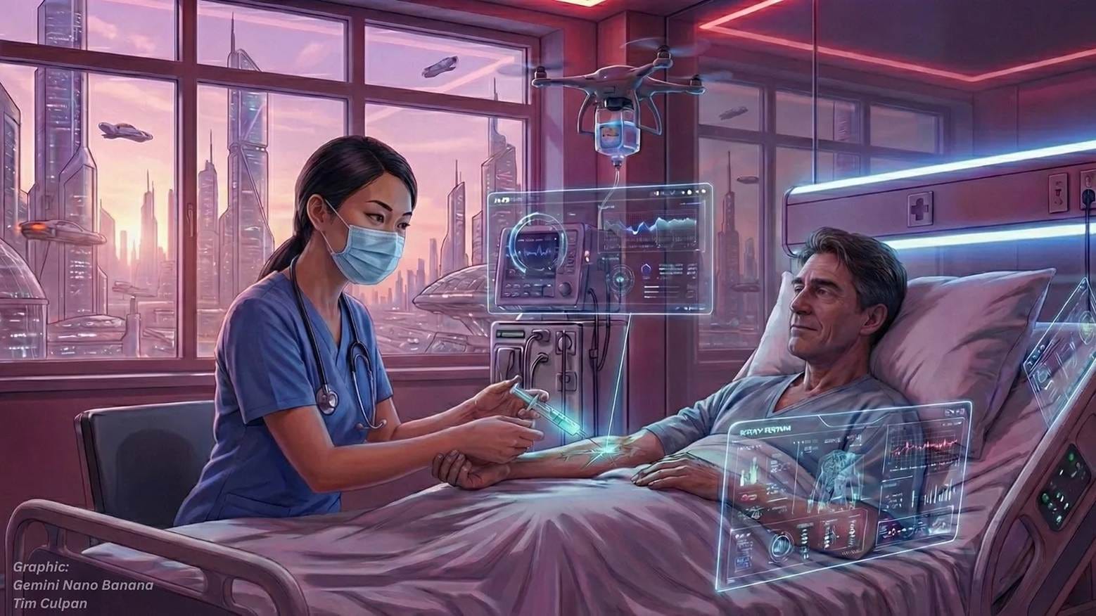 即使我有顆水晶球讓我能預見二十五年後人工智慧會帶我們走向何方,我確信AI無法取代任何一位伴我走過癌症疼痛、創傷和死亡幽谷的一線醫療人員。