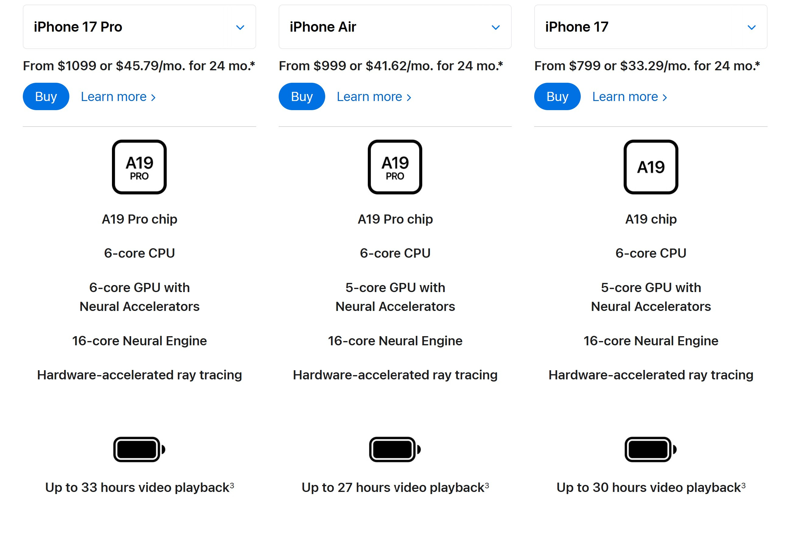 Possibly the biggest hurt could be with the chips. Apple uses the same A19 Pro CPU in the Air as it does with the iPhone 17 Pro. But the Air has only 5 GPU cores — as does the base iPhone 17 — while the iPhone 17 Pro has 6 GPU cores. (To be blunt, this is merely chip binning, not a new chip).