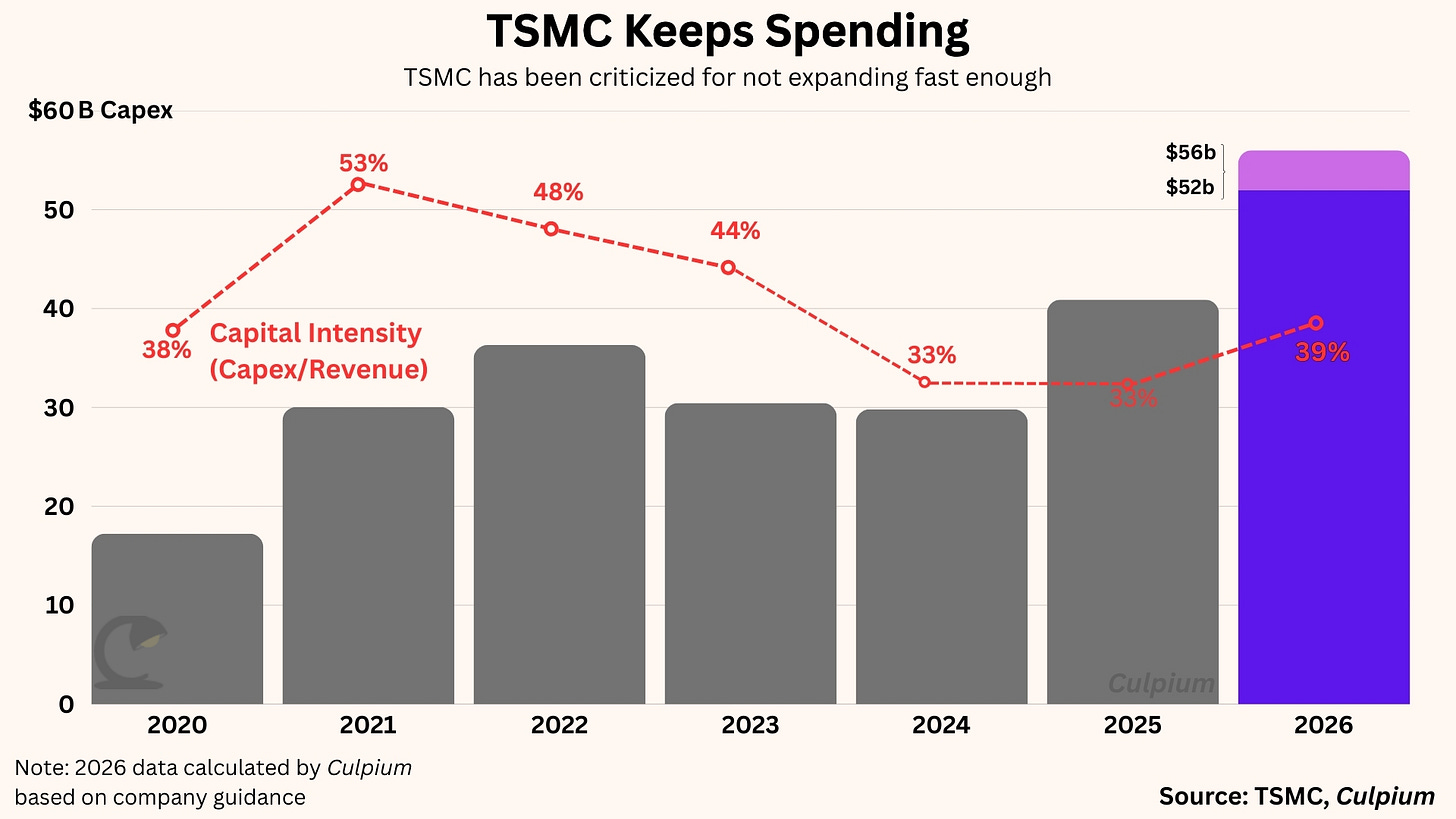 TSMC’s revenue climbed 36% last year to $122 billion, it reported Thursday. Nvidia’s sales for the fiscal year through January 2026 is set to climb 62% while Apple’s product revenue — which excludes services — is on track to grow just 3.6% for the 12-months to December 2025, according to Culpium estimates based on earnings reports and company guidance.