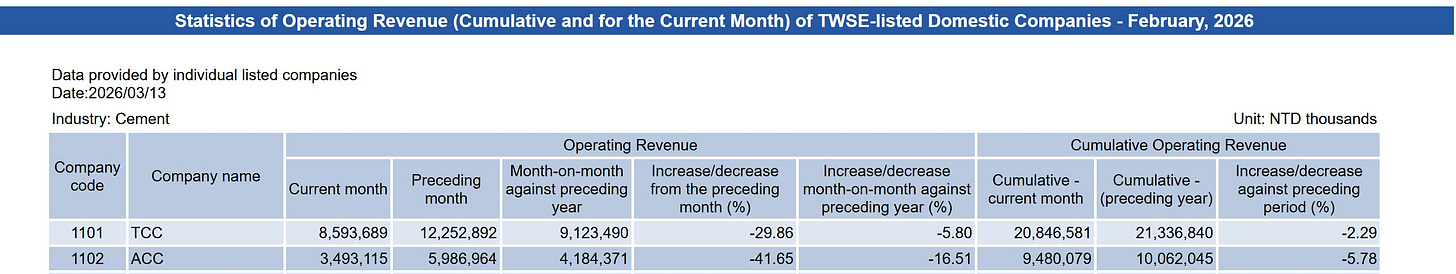 I tend to use the Chinese version for two reasons. I know the tickers of all the companies I usually keep an eye on, but if I see weird data pop up for something that’s not on my radar I’m more likely to know the Chinese name than the English name. Secondly, I’m likely to yield more if I Google the Chinese name rather than the English. However, in the day of Google Translate you’re really not at much of a disadvantage if you can’t read Chinese. But bear in mind, Taiwan follows the ROC dating system. What’s called 2026 in the rest of the world is known as 115年 in Taiwan.